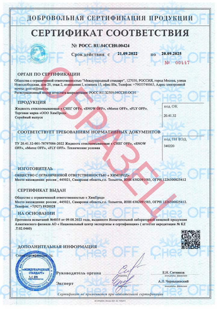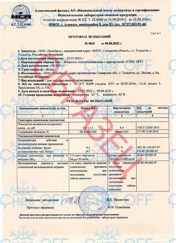 Мы оформляем товар в соответствии с ФЗ РФ. Незамерзайка хорошо показывает себя вплоть до температуры -35 °C. Наша компания постоянно подтверждает качество, проходя регулярные проверки Роспотребнадзора. Основной целью является удовлетворение потребностей и довольство наших клиентов.